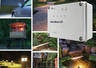 2 Operating Modes– Bi-stable & mono-stable, with smooth transition between modes timed from 1 second to 4 minutes. Each channel can be programmed and controlled independently. This product can be used to control your existing wiring system and can be integrated with Hamiltons Mercury Lighting System to allow remote switching. IP56 Rated – Suitable for year round outdoor use & designed to be mounted on an exterior wall.