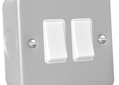 An all metal range in a stylish silver finish and the back boxes have been developed to ensure an exact fit, for that seamless look! It’s ideal for use in residential projects looking to achieve a modern industrial look with a sophisticated edge. Tough and impact resistant, Metalclad is also suitable where hard-wearing performance is required: workshops, garages, sheds, schools and industrial premises.